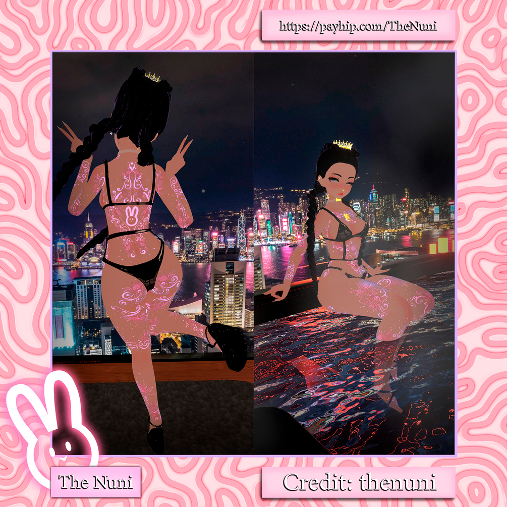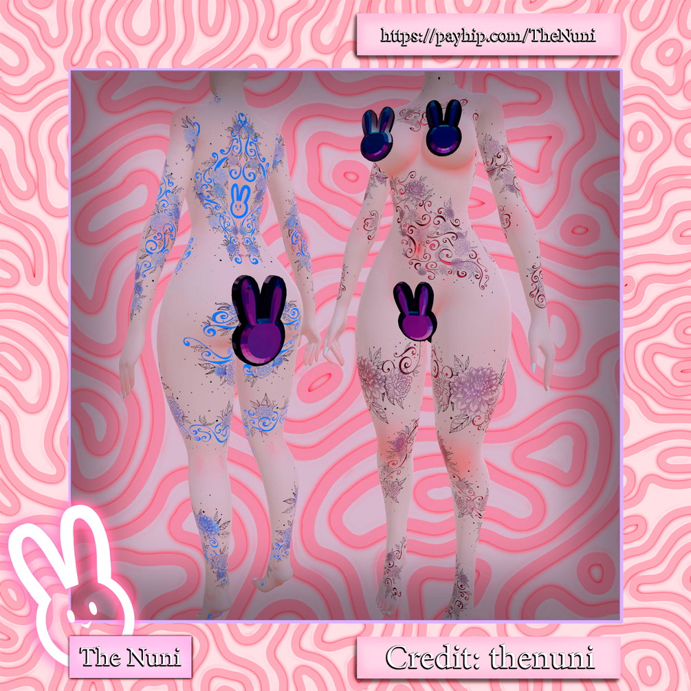 The handdrawn tattoo textures are transparent, adding the option to choose your skintone yourself. (THE BASE SKIN SHOWN IS NOT INCLUDED)